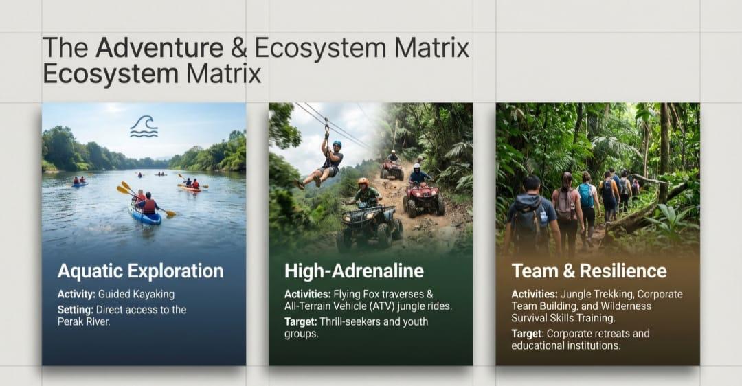 • High-Adrenaline: Flying fox traverses, ATV jungle rides